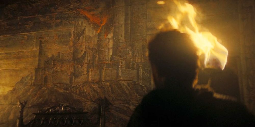 Cualquier fan de Juego de Tronos que se precie reconocerá que el castillo del mural de la pared es Harrenhal. Aquellos que estén familiarizados con el libro Fire & Blood de George RR Martin sabrán que este mural específico de Harrenhal en los apartamentos de Aemond debería ser el equivalente a una sirena sonando. El mural representa la destrucción de Harrenhal por el rey Aegon I y su dragón, el poderoso Balerion the Black Dread. El día después de que Harren el Negro terminara su enorme castillo, Aegon lo invadió y el rey de los Hijos del Hierro se negó a jurarle lealtad. Esto lleva a Aegon a quemar su castillo y a la muerte de Harren y sus hijos, lo que permite que la Casa Tully de Riverun se convierta en los nuevos Señores de Riverlands. Los espectadores de House of the Dragon recordarán Harrenhal de la temporada 1 como el lugar donde Lord Lyonel Strong (Gavin Spokes) y su hijo, Harwin (Ryan Corr), murieron en un incendio. Muchos en Westeros creen que el castillo está maldito y embrujado, y ha habido indicios en esta temporada de que veremos más de Harrenhal cuando Daemon llegue allí.