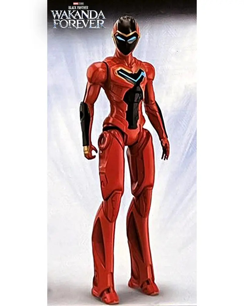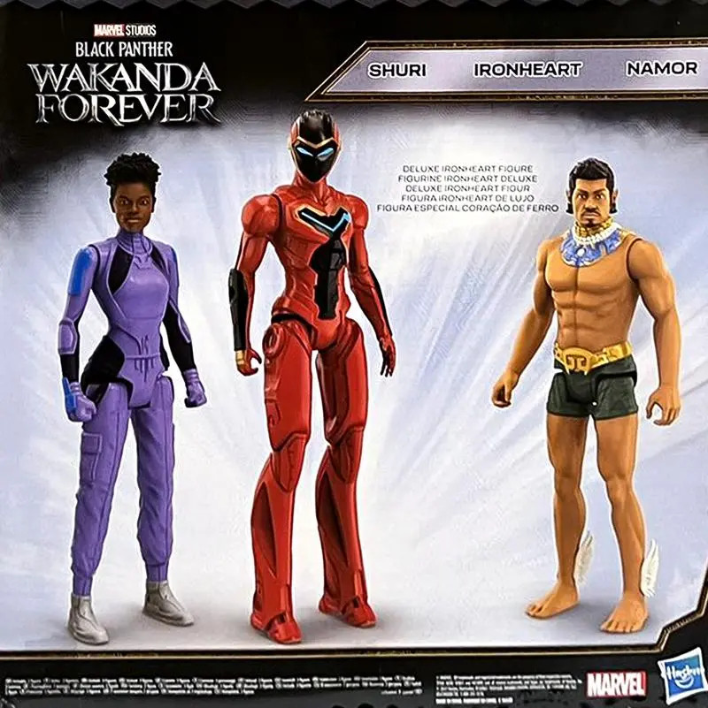 Visto en unos grandes almacenes, un paquete de tres figuras de acción de Wakanda Forever muestra a Shuri, Namor y Ironheart con su traje completo. El traje mejorado de Ironheart parece estar fuertemente basado en los trajes de Extremis Iron Man y del primer cómic de Ironheart.