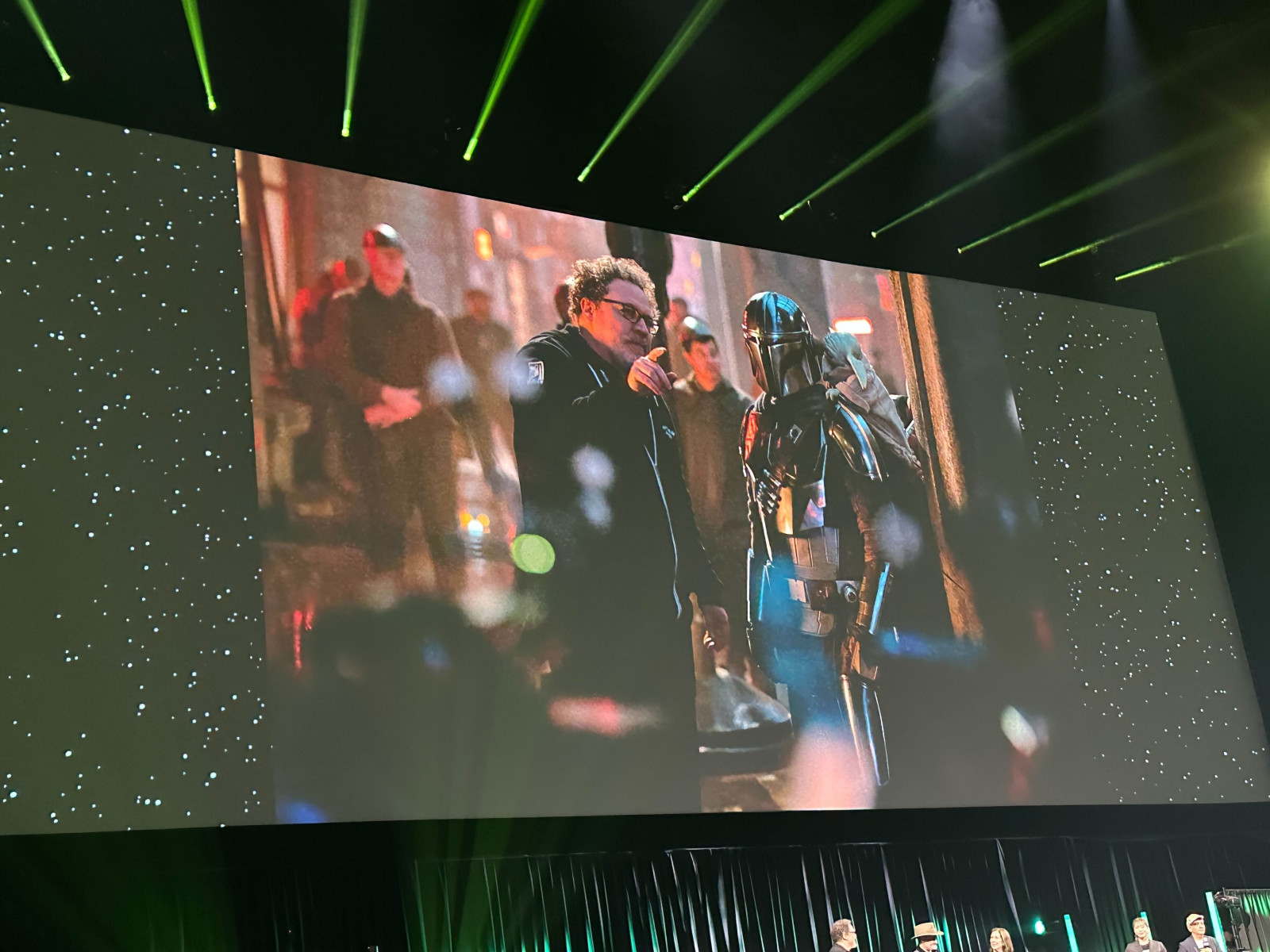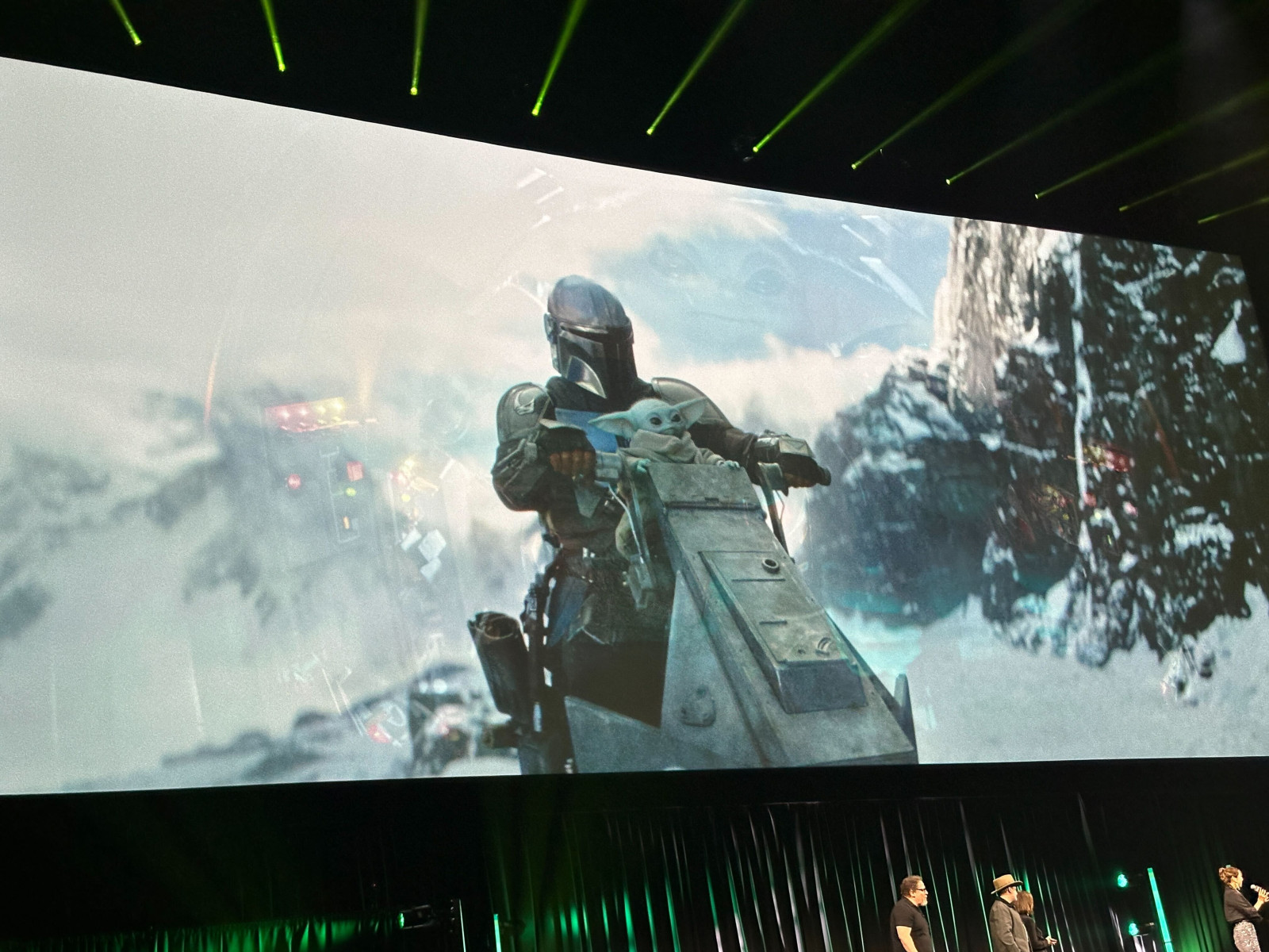 Si bien el metraje no se proyectó públicamente, el propio Steve Weintraub de Collider estuvo presente y compartió algunas fotos de la producción de The Mandalorian y Grogu que puedes ver tú mismo a continuación: