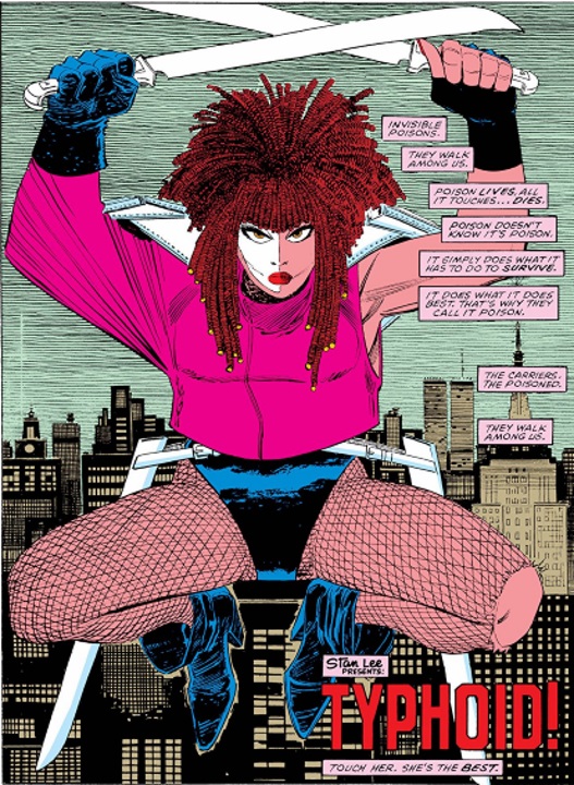 Su debut se dio en Daredevil #254 (mayo de 1988). Mary Walker, su nombre real, padece trastorno de identidad disociativo, que la lleva a mostrar personalidades distintas, como Bloody Mary y Typhoid Mary que son las más violentas. Typhoid Mary tiene una gama de poderes psiónicos, como telekinesis y pyrokinesis.