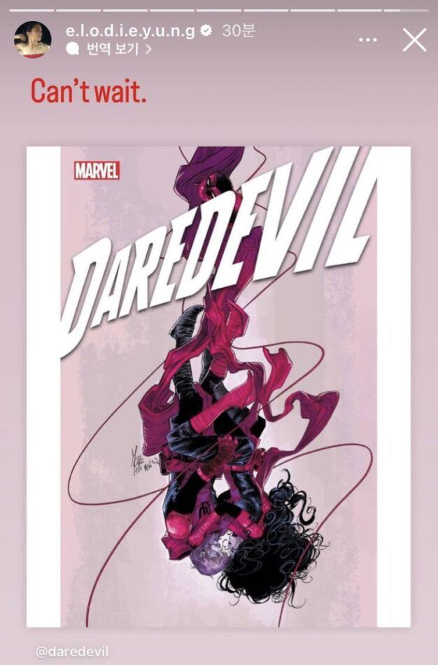 Los fans de Marvel conocen mejor a Yung por su aparición como la despiadada asesina en la segunda temporada de Daredevil de Netflix. Compartió una publicación de la cuenta oficial de Instagram de Daredevil en la que aparecía la portada del último número de un cómic reciente.