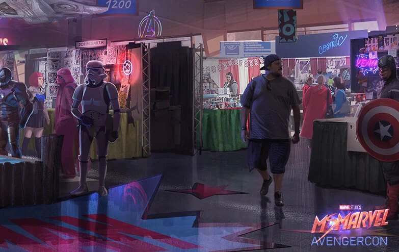 Recientemente ha tenido su culminación, es un detalle perdido del set del primer episodio de Ms. Marvel en la AvengerCon el que ha sido noticia. El set estaba completamente lleno de callbacks, referencias, memes y huevos de pascua de todo el Universo Cinematográfico de Marvel. Gracias a una de las artistas conceptuales, Shae Shatz, también sabemos que se recortaron más cosas.