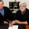 El creador de Star Wars llegó hasta el set de la nueva serie de la saga para desearle un feliz cumpleaños al director Jon Favreau.